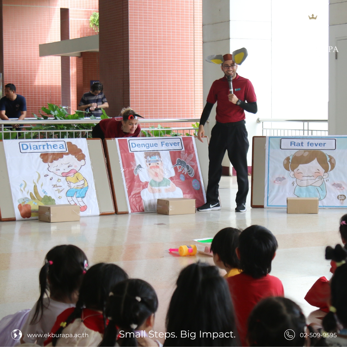 ในสัปดาห์นี้ น้อง ๆ อนุบาลได้สนุกและเรียนรู้ผ่านกิจกรรม Diseases Carrier Day ที่เต็มไปด้วยสาระความรู้เกี่ยวกับสัตว์พาหะนำโรค เช่น ยุง หนู และแมลงวัน เด็ก ๆ ได้เรียนรู้ว่า