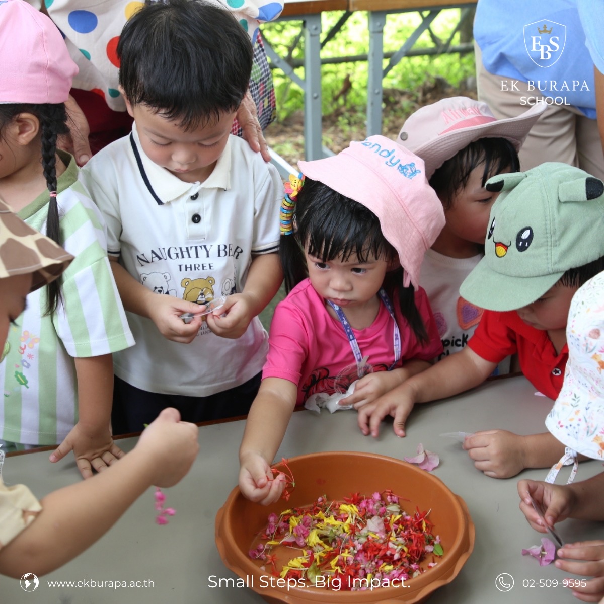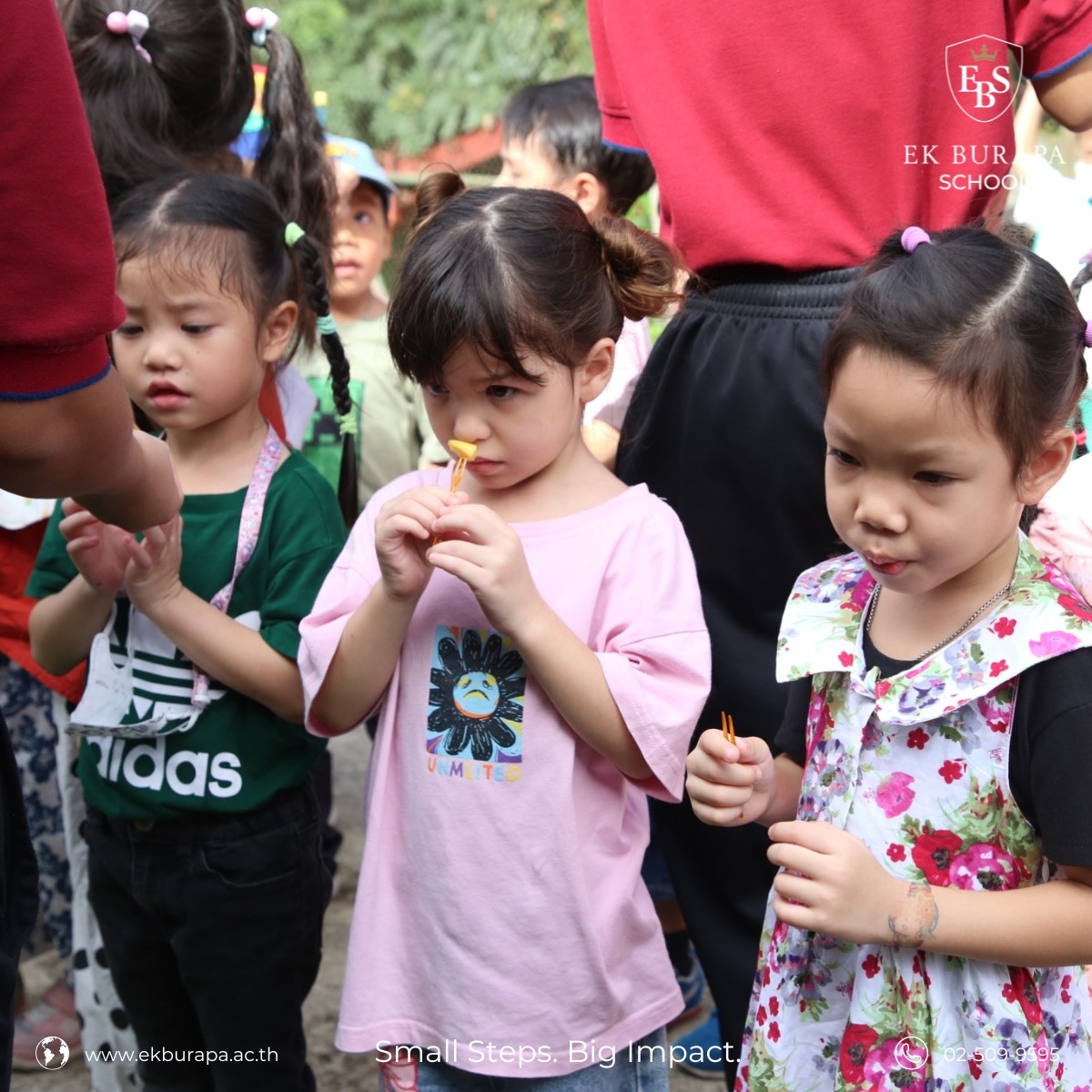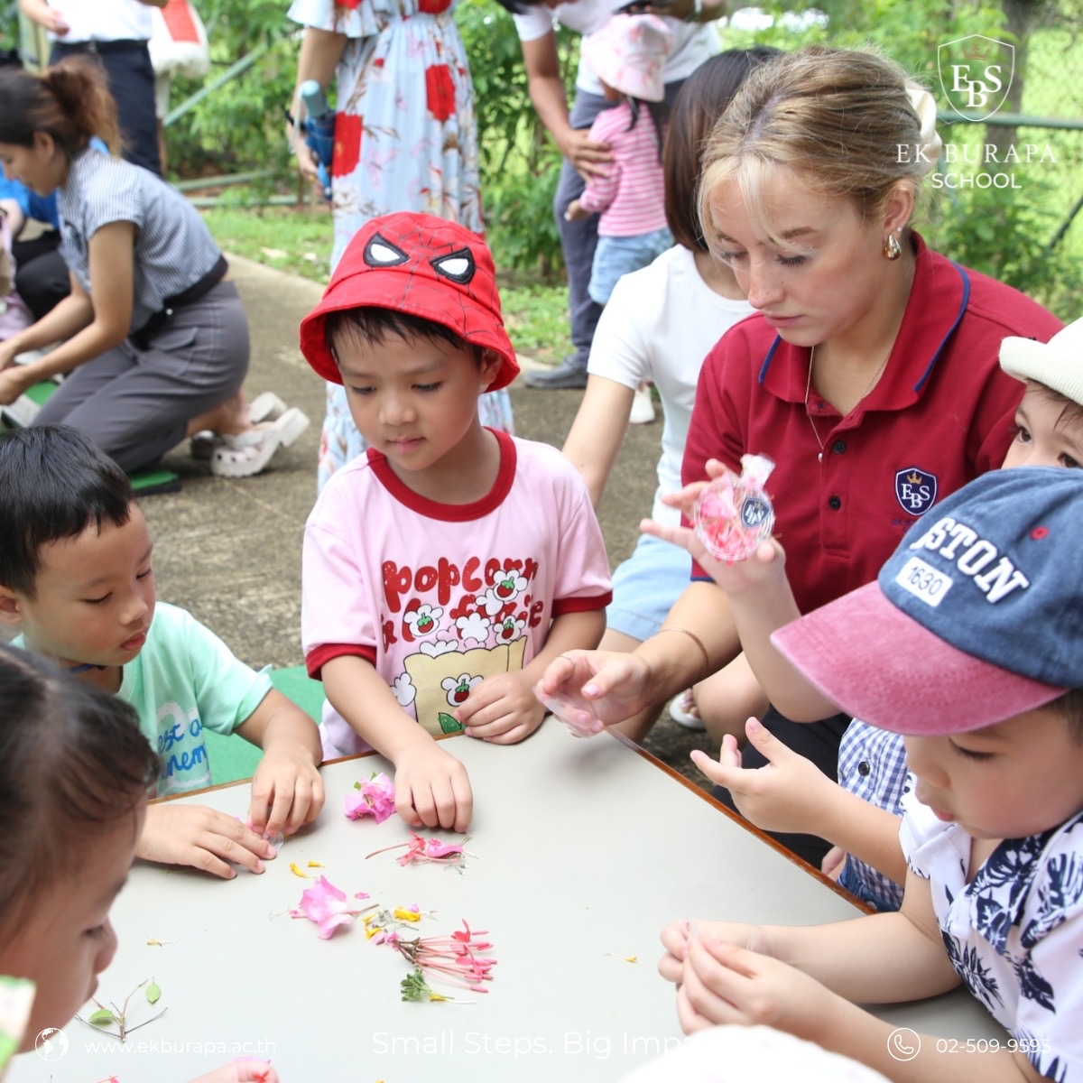 สัปดาห์นี้น้อง ๆ อนุบาลได้สนุกกับกิจกรรม Nature Day ที่เต็มไปด้วยการเรียนรู้ผ่านการสำรวจธรรมชาติอย่างใกล้ชิด ใน Green Land เด็ก ๆ ได้ฝึกสังเกต บอกชื่อและลักษณะของต้นไม้-ดอกไม้ รู้จักส่วนประกอบและประโยชน์ของพืช พร้อมทั้งเรียนรู้คำศัพท์ภาษาอังกฤษเกี่ยวกับพืชและธรรมชาติ