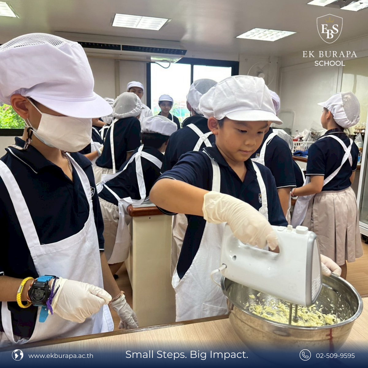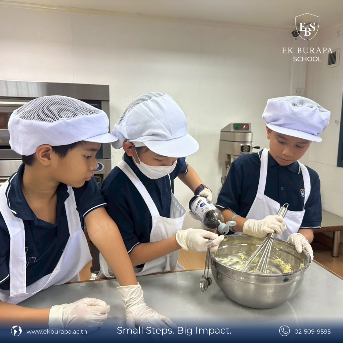 กิจกรรมนี้ช่วยให้เด็ก ๆ ได้เรียนรู้ส่วนผสมและขั้นตอนการทำขนม พร้อมทั้งฝึกทักษะการทำงานเป็นทีม การสื่อสาร และการแก้ปัญหา ผ่าน Inquiry-based Learning ที่เน้นการตั้งคำถาม ทดลอง และเรียนรู้จากประสบการณ์ตรง