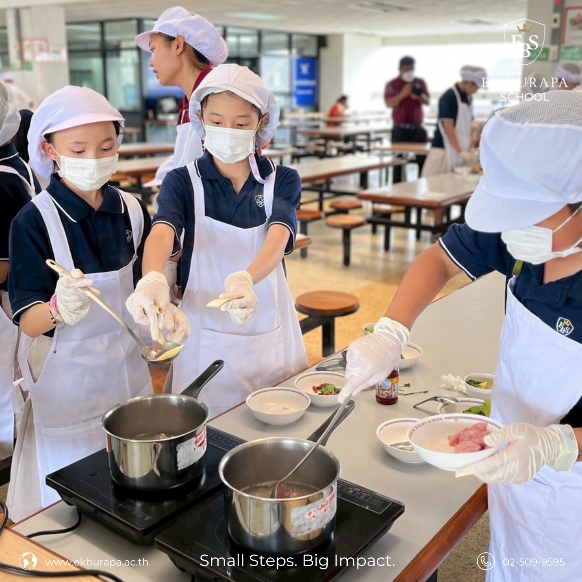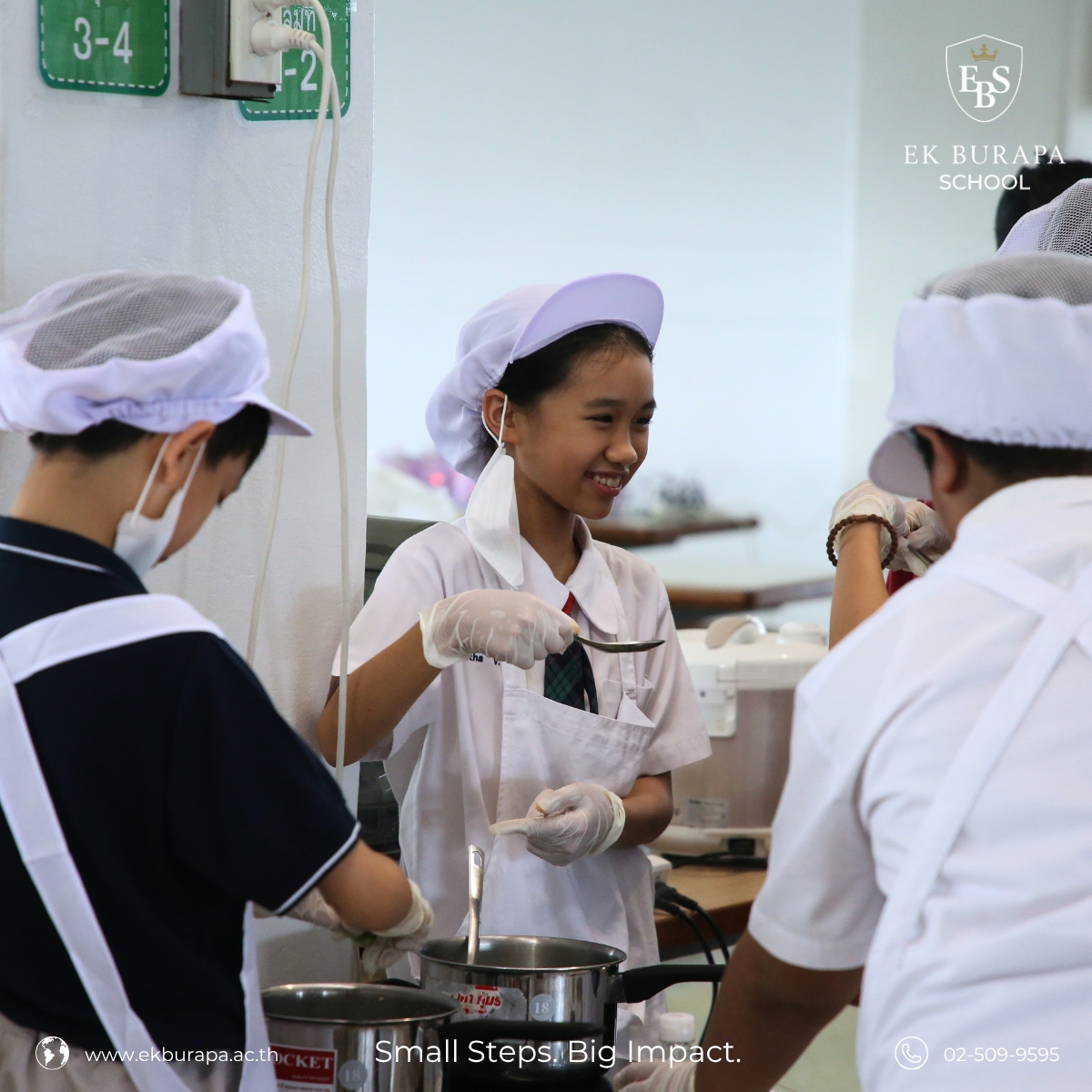 👩‍🍳นักเรียน Grade 6 ได้ลงมือทำเมนู “ต้มยำไก่” เพื่อฝึกทักษะชีวิตที่สำคัญในการดำเนินชีวิตประจำวัน เช่น การวางแผนงาน การแบ่งหน้าที่ การประกอบอาหารอย่างถูกสุขลักษณะ และการทำงานร่วมกับผู้อื่น