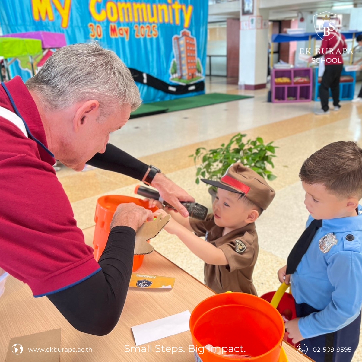 สัปดาห์นี้น้อง ๆ อนุบาลสนุกสนานกับกิจกรรม My Community ในหน่วยการเรียนรู้ ชุมชน เด็กๆ จะได้รู้จักสถานที่ต่าง ๆ เช่น ตลาด และร้านค้า คือ สถานที่ซื้อ – ขายสินค้า โรงพยาบาล คือ สถานที่รักษาผู้ป่วย ธนาคาร คือ สถานที่สำหรับฝาก และถอนเงิน เด็ก ๆ ยังได้เรียนรู้คำศัพท์ต่างๆ และสามารถบอกชื่อ ความสำคัญ และคำศัพท์ภาษาอังกฤษเกี่ยวกับสถานที่ ต่างๆ ในชุมชนผ่านกิจกรรมและการเล่นสนุก ๆ พร้อมกับพัฒนาทักษะต่าง ๆ อย่างสมดุล