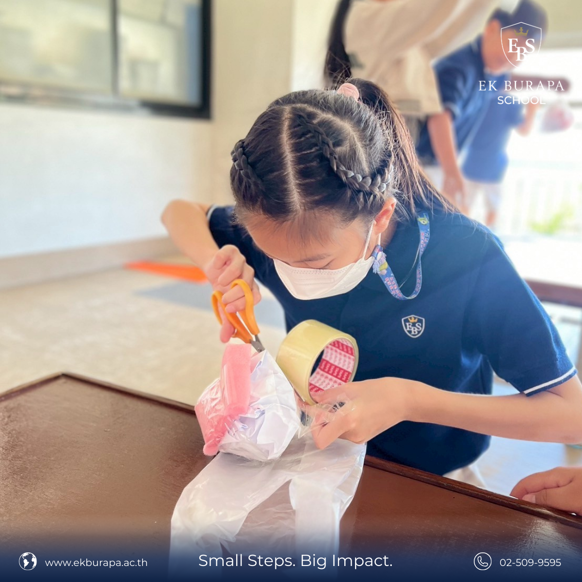 👩🔬 เด็ก ๆ ได้ร่วมกันวางแผน ออกแบบ และสร้างวิธีป้องกันไม่ให้ไข่แตกเมื่อตกจากที่สูง พร้อมทดสอบไอเดียของตนเอง