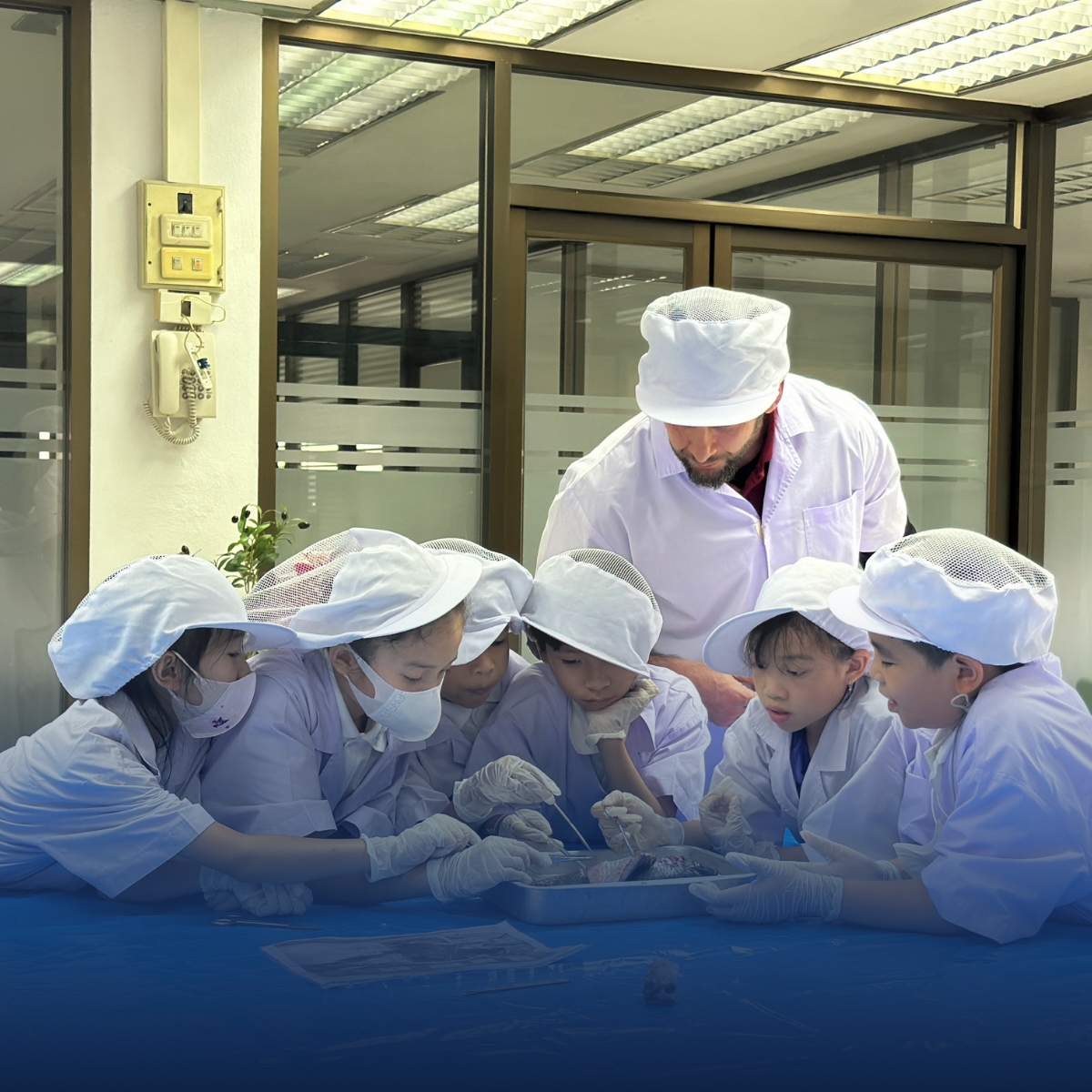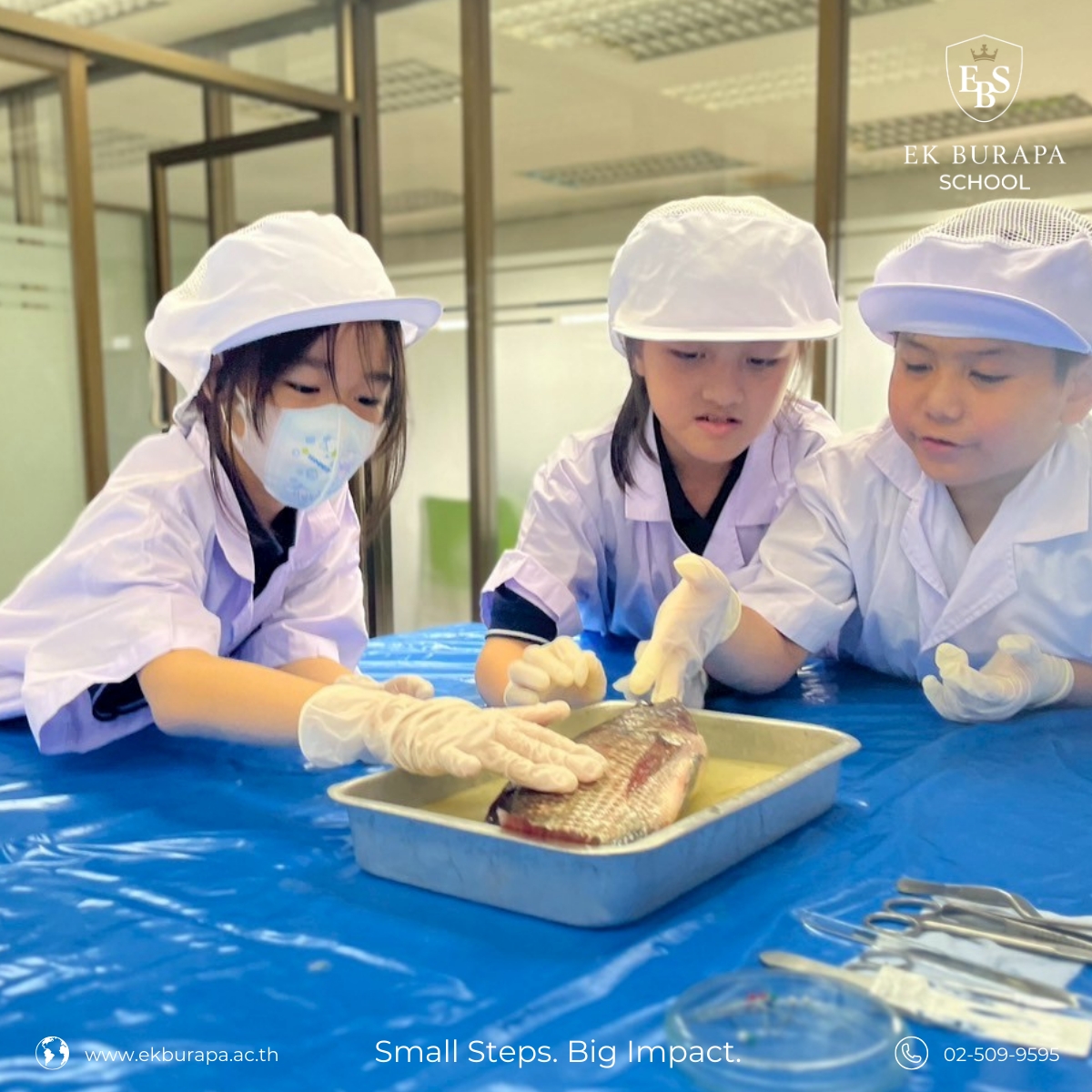 เด็ก ๆ ได้ลงมือศึกษาลักษณะอวัยวะภายนอกและภายในของปลานิล ตั้งแต่ปาก กระเพาะ ลำไส้ ไปจนถึงทวารหนัก พร้อมเรียนรู้การทำงานของระบบย่อยอาหารแบบเห็นจริง