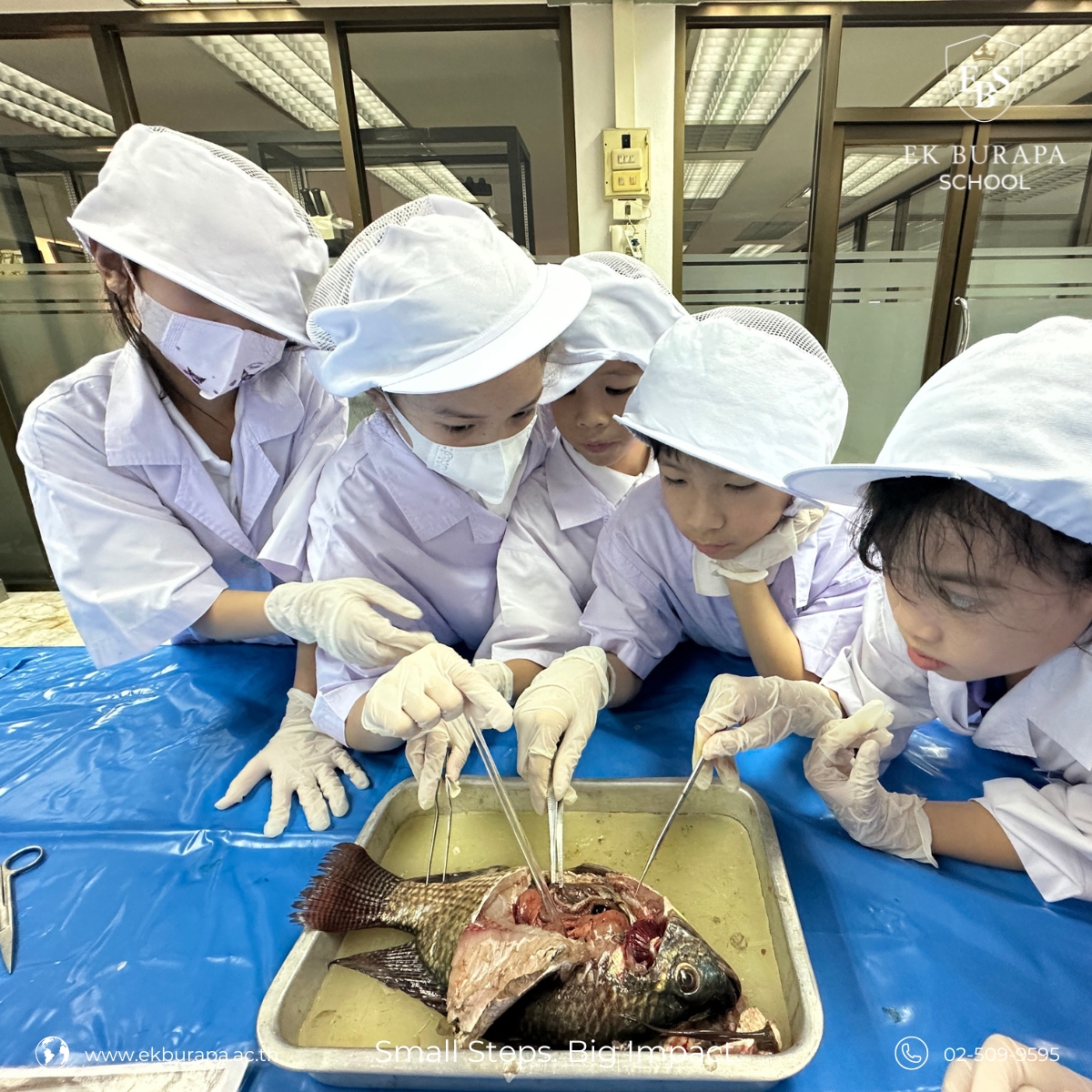 🧪 นักเรียน Grade 4 เรียนรู้เรื่อง “ระบบย่อยอาหารของสัตว์มีกระดูกสันหลัง” ผ่านกิจกรรม “ผ่าปลานิล” ในรายวิชาวิทยาศาสตร์ 🐟📚