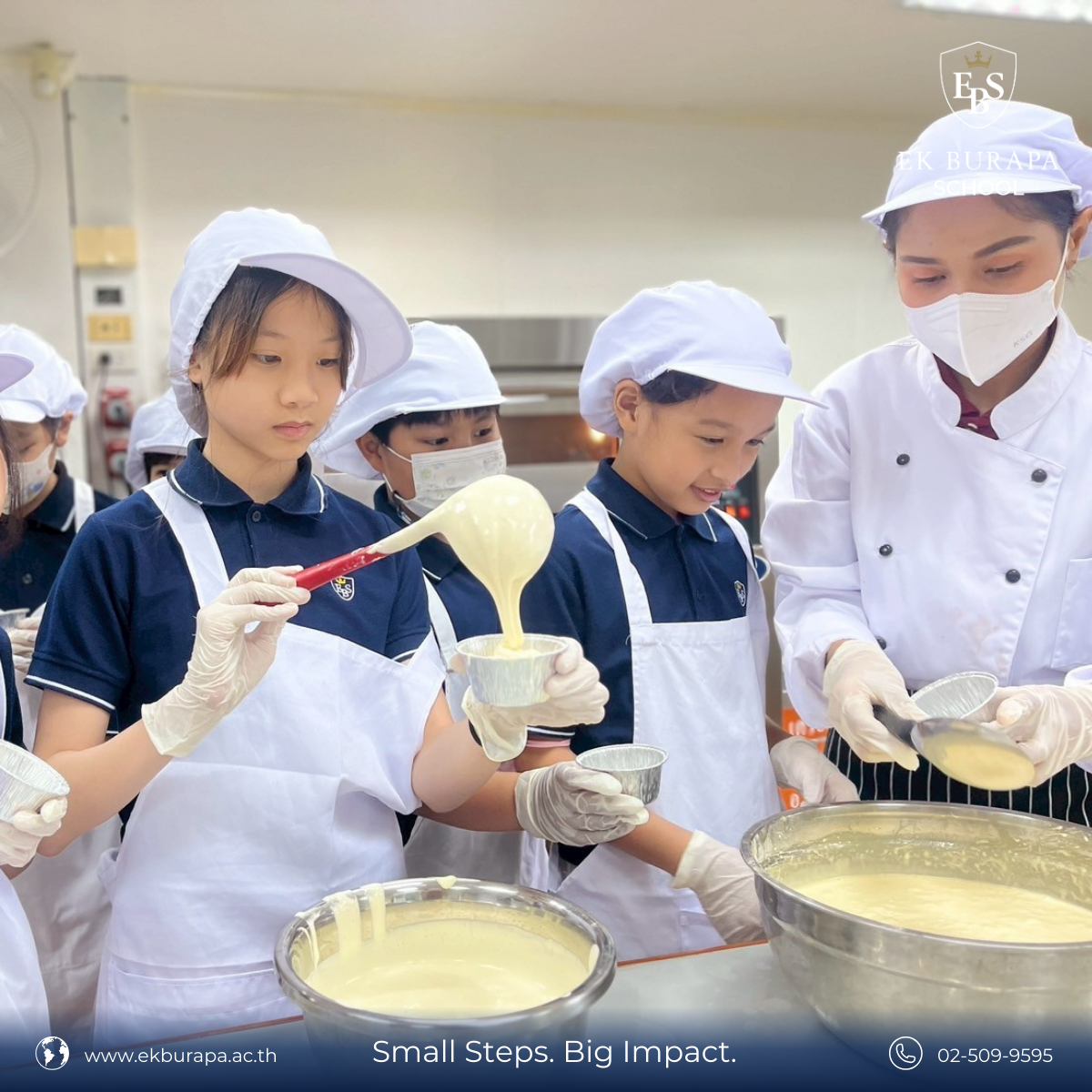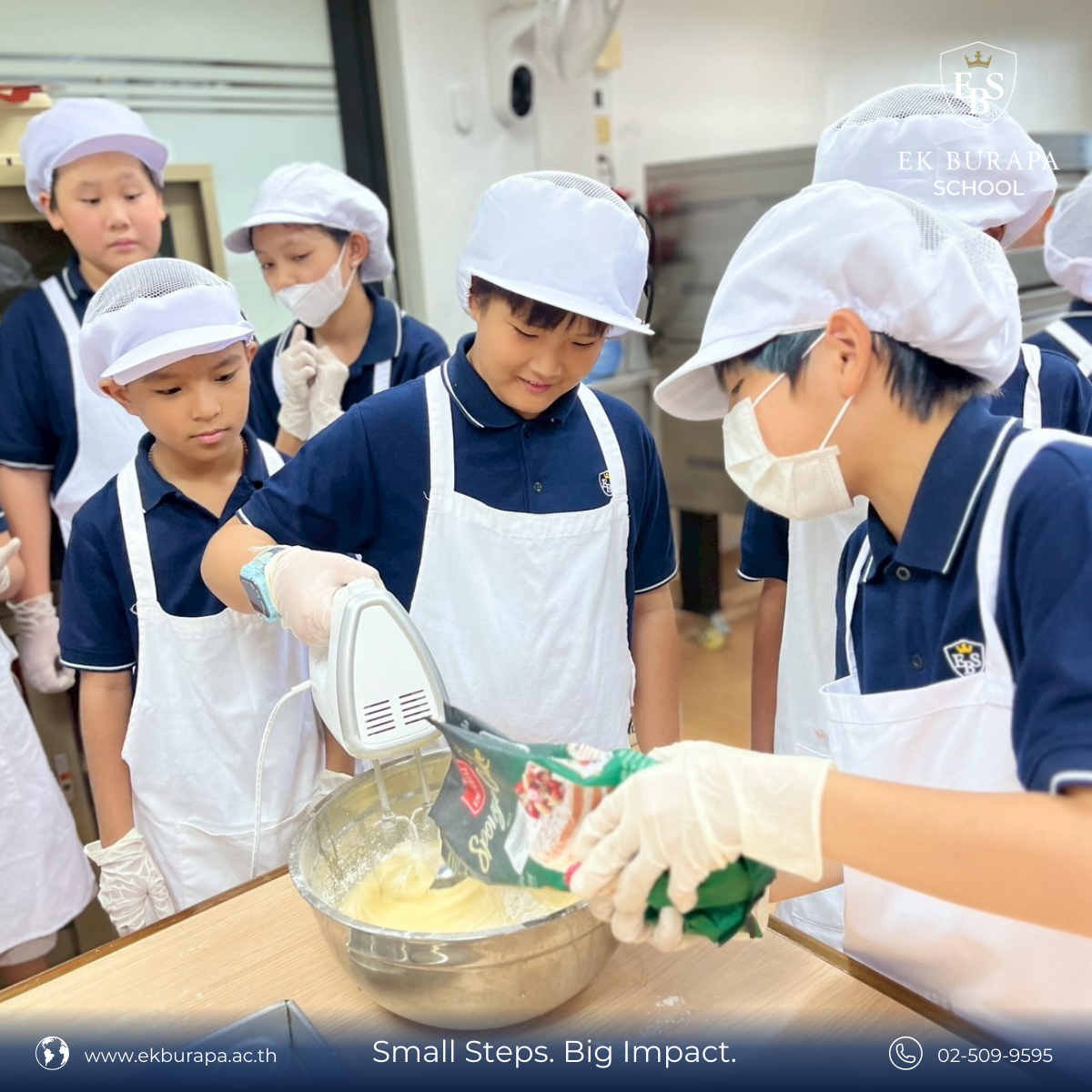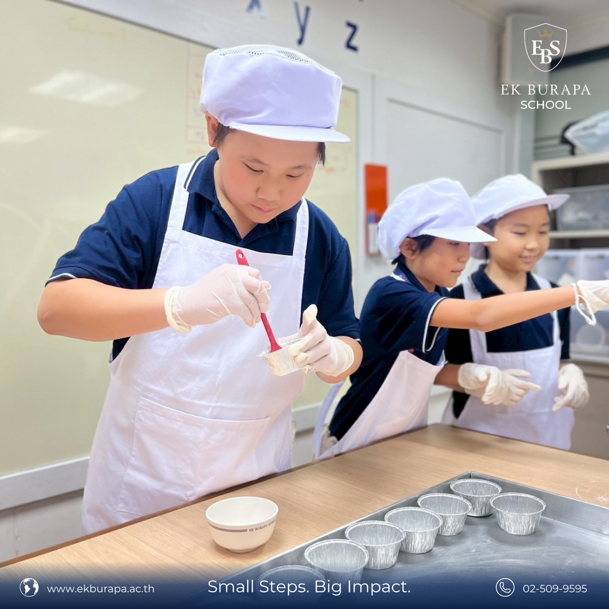 นักเรียน Grade 5 ได้ลงมือทำขนมในกิจกรรม Cooking Bakery โดยได้ทำขนม Cup Cake ด้วยตนเอง เรียนรู้ทั้งส่วนผสม ขั้นตอนการทำ และฝึกทักษะการทำงานเป็นทีม การสื่อสาร และการแก้ปัญหา ผ่านกระบวนการ Inquiry-based Learning ที่เน้นการตั้งคำถาม ทดลอง และเรียนรู้จากประสบการณ์ตรง 🧐✨